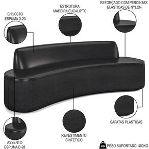 Altura: 83 cm | AssemblyRequired: Sim, sugerimos a contratação do nosso serviço de montagem (para os CEPs em que o serviço está dispon | Color: Preto | ColorFamily: Preto | ColorSimple: Preto | ColorSupplier: Preto | Cor: Preto | Gênero: Unisex | Largura: 260 cm | Manual: Sim | Marca: Mpozenato | Material: Madeira de Eucalipto | MaterialFamily: Madeira de Eucalipto | Model: Koane | Origem: Nacional | OriginCountry: Nacional | OriginState: PR | Peso: 59 kg | Peso Suportado: 400 kg | ProductContents: 1 Sofá | ProductHeight: 83 | ProductInstructions: Produto para uso em ambiente interno, nao devendo ficar exposto ao sol, calor e umidade excessivos. | ProductLength: 90 | ProductWarranty: 90 dias após o recebimento do produto | ProductWeight: 59 | ProductWidth: 260 | Profundidade: 90 cm | Requere montagem: Sim | SizeDescription: 83 x 260 x 90 cm | SupplierSimpleName: Sofá 4 Lugares para Sala de Estar Living 260cm Koane D06 Sintético Preto - Mpozenato | Tipo de : Fabricante