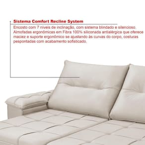 Seu encosto reclinável em cinco posições, proporcionando-lhe mais conforto na hora do descanso. Não para por aí: seu assento retrátil conta com espuma D26 com pillow top, transformando seu sofá em uma verdadeira cama para assistir seus esporte/series/filmes favoritos.