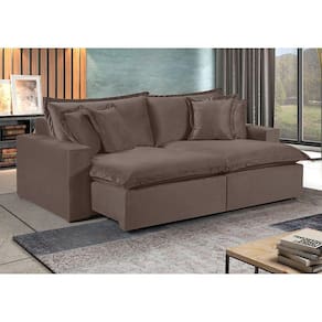 Sofá 4 Lugares Retrátil Com Encosto Fixo Martins M-145 Marrom Sofa 4 Lugares Retratil Com Encosto Fixo Martins M-145 Caracteristicas: Material: Veludo Requer Montagem?: Sim Acessoios inclusos: Almofadas Decorativas Acompanha Chaise?: Nao Tipo do Acento, tem Pillow Top?: Retratil, Com Pillow Top De 20 cm Densidade Espuma Assento: D-28 Possui Mola no Assento? Tipo de mola?: Sim, Molas Ensacadas Possui Persinta? Tipo de Persinta: Sim, Percinta Elastica Tipo do Encosto: Encosto Fixo Amofadas do encosto Fixa ou Solta?: Encosto Fixo, Almofadas Solta Densidade Espuma Encosto: 100 Fibra Silicone Posui Pes (Sim ou Nao): Sim Quantidade de Pes: 8 Tipo de Pes (Material): Madeira Acompanha Rodizio (Sim ou Nao): Sim Quantidade de Rodizios: 2 Rodizios Material Rodizio: Silicone Materia Prima: Elcalipto Tratado Revestimento: Espuma D-28 Soft Madeira Aparelhada ou Bruta?: Aparelhada A Madeira e Tratada? (Sim ou Nao): Sim Tipo de Trilho Onde Corre o Retratil?: Tubo Pintado E Bipartido ou Inteirico?: Bipartido