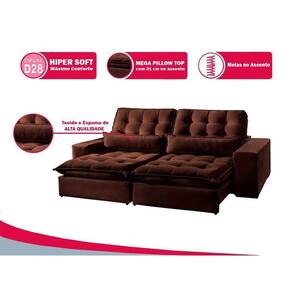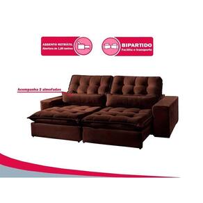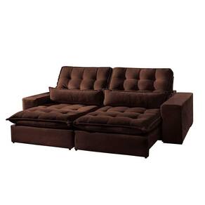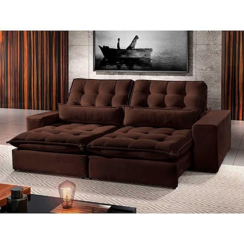 Sofa 4 Lugares Retratil e Reclinavel Bruna Veludo Marrom - Moveis Mix