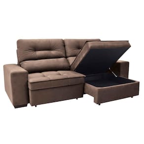 Características: Modelo: Artemis Tipo de estofado: 4 lugares Estrutura: Madeira de reflorestamento (eucalipto e pinus) seca e tratada, chapas de OSB e percintas elásticas Revestimento: Tecido Suede Assento: Espuma D33, Retrátil Encosto: Fibra de Poliéster Siliconizada, Reclinável Braço: Espuma D23 Capacidade de carga: Cada assento suporta até 120 Kg Altura do assento ao chão: 46 cm Fixação: Grampos de aço Pés: Plástico rígido tabaco e rodízios Altura dos pés: 6 cm Dimensões internas do baú: Largura 82 x Altura 14 x Profundidade 82 cm