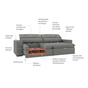 que tal o sofá jazz?cheio de vantagens estruturais, o sofá jazz é daquele tipo de móvel que transforma o ambiente: retrátil e reclinável, ele conta com molas bonnel e percintas no assento, assim a sustentação para o corpo fica mais completa e você pode desfrutar por mais tempo. a entrada usb é um extra para a pde, já que te permite carregar aparelhos eletrônicos sem precisar levantar do conforto do seu cantinho. o lar-style também ganha um reforço incrível, já que o design convidativo, revestimento de suede e cor clássica destacam a peça e agregam muito bom gosto ao ambiente, bastando que você escolha qual o hor programa para curtir nele. Marca: Modern