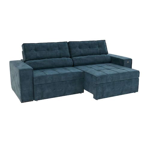 sofá 4 lugares retrátil e reclinável lanus veludo azul marinho 250 cm