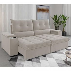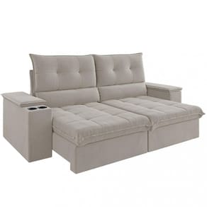 Características: Estrutura em Eucalipto Retrátil corre no tubo Reclinável em até 5 posições Duplo Molejo Pillow top Molas ensacadas Espuma D23 Encosto 100 fibra siliconada Braço com um porta copos Bipartido 8 Pés 4 Rodízios Revestido com tecido veludo Suporta até 270kg totais