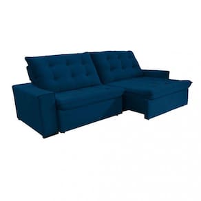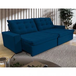 Características: Espuma: D 26 Pillow Top: 15 cm por assento Duplo molejo: molas espirais e molas ensacadas. Manta Siliconada nos assentos Percintas: Elásticas Madeira: Eucalipto de reflorestamento tratado. Encosto: 80 fibra de silicone / 20 flocos de espuma Reclinável: catraca com 5 posições Retrátil: sistema corrediças metálicas Rodízio: Silicone Pés: Madeira Tecido: Veludo Profundidade Fechado: 115cm Profundidade Aberto: 170cm
