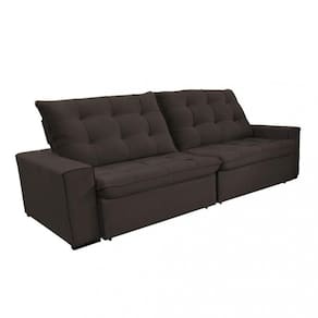 Características: Espuma: D 26 Pillow Top: 15 cm por assento Duplo molejo: molas espirais e molas ensacadas. Manta Siliconada nos assentos Percintas: Elásticas Madeira: Eucalipto de reflorestamento tratado. Encosto: 80 fibra de silicone / 20 flocos de espuma Reclinável: catraca com 5 posições Retrátil: sistema corrediças metálicas Rodízio: Silicone Pés: Madeira Tecido: Veludo Profundidade Fechado: 115cm Profundidade Aberto: 170cm