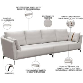 Com um design de tirar o folego, o Sofá 4 Lugares Sala de Estar Living 290cm Pés Industrial Evan D06 Veludo Bege, da Lyam Decor, é o estofado perfeito para criar uma sala de estar ou living moderno e com um toque de personalidade e conforto. O sofá living é indispensável para quem procura um estofado firme, confortável e sofisticado, sem abandonar a versatilidade e a qualidade. O modelo Evan proporciona tudo isso e muito mais, já que conta com estrutura resistente, tapeçaria com espuma de alta densidade e pés metálicos que remetem ao estilo industrial. Além disso, é um modelo de sofá que combina com vários estilos de decoração, como também pode ser aproveitado em diversos ambientes. Então, não espere mais e garanta já o seu!