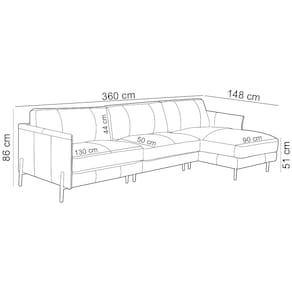 Largura assento chaise: 90 cm