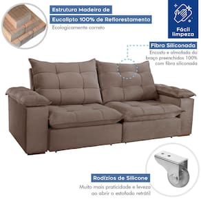 O(a) Sofá 5 Lugares Espanha Retrátil e Reclinável 290cm Bege Escuro - Celflex é produzido em Eucalipto na escala de brilho Não Possui, e possui um grau de dificuldade de montagem: Médio.