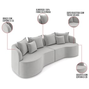O Sofá 5 Lugares Orgânico Living Mersa de 290 cm é a escolha ideal para quem busca conforto, estilo e durabilidade. Com design modular, o sofá Mersa é versátil e pode se adequar a diferentes layouts de sala. Ele possui revestimento em Veludo Cinza, perfeito para trazer um toque de modernidade para sua sala. Conta com uma estrutura feita em madeira de lei (eucalipto), devidamente tratada e aparelhada, oferecendo maior resistência ao móvel. Os reforços com cantoneiras e chapas em MDF garantem uma estrutura sólida e resistente. Tanto o encosto quanto o assento possuem cintas metálicas e molas espirais no assento, oferecendo conforto, suporte e aconchego como poucos sofás no mercado. O estofado assegura um toque macio e aconchegante com espumas D-28 no assento, fibra siliconada 100% no encosto e espumas D-23 nos braços. Tudo pensado para proporcionar uma sensação acolhedora, perfeita para relaxar enquanto você assiste a um filme ou lê um bom livro. Sem contar que os pés de madeira acrescentam-se ao design garantindo maior estabilidade ao móvel. E tem mais, além do encosto e assento serem fixos ideal para quem deseja unir conforto, estilo e praticidade, o sofá ainda acompanha charmosas almofadas decorativas, tornando-o uma peça perfeita. Se você busca um sofá que combine sofisticação extra, durabilidade e estilo, o Living Mersa é a escolha certa. Com ele, você terá uma peça única que valoriza o seu lar e proporciona o descanso merecido após um dia agitado. Não perca a chance de adquirir esse sofá e elevar o nível de conforto e beleza do seu espaço!
