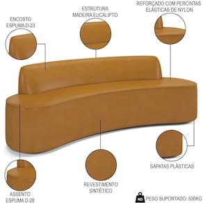 Altura: 83 cm | AssemblyRequired: Sim, sugerimos a contratação do nosso serviço de montagem (para os CEPs em que o serviço está dispon | Color: Caramelo | ColorFamily: Caramelo | ColorSimple: Caramelo | ColorSupplier: Caramelo | Cor: Caramelo | Gênero: Unisex | Largura: 280 cm | Manual: Sim | Marca: Mpozenato | Material: Madeira de Eucalipto | MaterialFamily: Madeira de Eucalipto | Model: Koane | Origem: | OriginCountry: | OriginState: PR | Peso: 64 kg | Peso Suportado: 500 kg | ProductContents: 1 Sofá | ProductHeight: 83 | ProductInstructions: Produto para uso em ambiente interno, nao devendo ficar exposto ao sol, calor e umidade excessivos. | ProductLength: 90 | ProductWarranty: 90 dias após o do produto | ProductWeight: 64 | ProductWidth: 280 | Profundidade: 90 cm | Requere montagem: Sim | SizeDescription: 83 x 280 x 90 cm | SupplierSimpleName: Sofá 5 Lugares para Sala de Estar Living 280cm Koane D06 Sintético Caramelo - Mpozenato | Tipo de : Fabricante