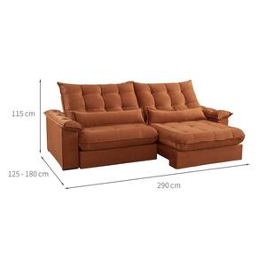 sofá 5 lugares retrátil e reclinável aruba veludo terracota 290 cm - Marrom