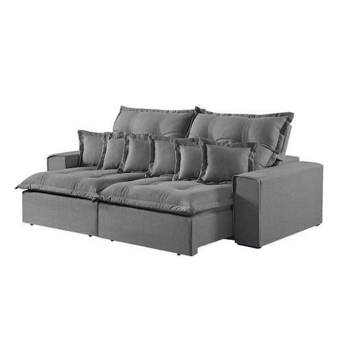 Sofá 5 Lugares Retrátil E Reclinável Linho M-144 Martins Cinza Sofa 5 Lugares Retratil e Reclinavel Linho M-144 Martins Caracteristicas: Material: Linho Requer Montagem?: Sim Acessoios inclusos: Almofadas Decorativas Acompanha Chaise?: Nao Tipo do Acento, tem Pillow Top?: Retratil, Com Pillow Top De 20 Cm Densidade Espuma Assento: D-28 Possui Mola no Assento? Tipo de mola?: Sim, Molas Ensacadas Possui Persinta? Tipo de Persinta: Sim, Percinta Elastica Tipo do Encosto: Reclinavel Amofadas do encosto Fixa ou Solta?: Encosto Reclinavel, Almofadas Fixa Densidade Espuma Encosto: 100 Fibra Silicone Posui Pes (Sim ou Nao): Sim Quantidade de Pes: 8 Tipo de Pes (Material): Madeira Acompanha Rodizio (Sim ou Nao): Sim Quantidade de Rodizios: 2 Rodizios Material Rodizio: Silicone Materia Prima: Elcalipto Tratado Revestimento: Espuma D-28 Soft Madeira Aparelhada ou Bruta?: Aparelhada A Madeira e Tratada? (Sim ou Nao): Sim Tipo de Trilho Onde Corre o Retratil?: Tubo Pintado E Bipartido ou Inteirico?: Bipartido Estagios da Catraca: Catacra 5 Estagios