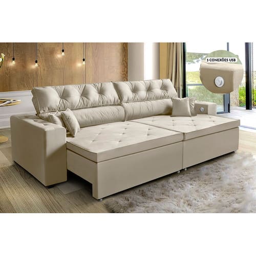 1 Sofá Com Tecnologia de carregamento USB.