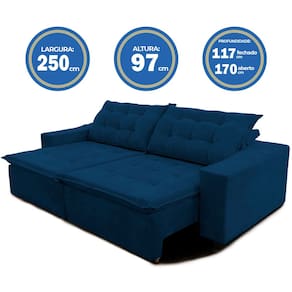Procurando um estofado amplo, confortável, bonito e que combine com seu ambiente? Conheça o Sofá Amazonas. Sua estrutura desenvolvida em madeira de eucalipto de reflorestamento proporciona maior segurança e qualidade ao móvel. Seu revestimento é em tecido Suede, seus assentos, encostos e braços em fibra de silicone faz deste produto sinônimo de sofisticação e extremo conforto. Seus assentos retráteis tornam este produto muito espaçoso para você e sua família! Desfrutar de um bom filme em sua sala não será mais como antes. Características: - Encosto fixo, almofadas fixas compostas de 100% fibra siliconada e para maior conforto. - Assentos: Retráteis com espuma D28 soft envolvidas em fibra 100% siliconada compactada, molas, percintas pneumáticas com feltro para proteger do atrito com as molas. - Braços: Com 25cm de largura e com espuma D23. - Fixação: Grampos galvanizados antiferrugem. - Estrutura de Madeira maciça 100% eucalipto de reflorestamento, produto ecologicamente correto. - Tecido Veludo Light. - Pés em Tabaco. Medidas montado: - Altura: 105 cm - Profundidade fechado: 106 cm - Profundidade aberto: 155 cm - Largura: 250 cm - Pé de tabaco: 0,5 cm - Rodas de silicone - Peso aproximado 80 kg - Uma Praticidade: Bipartido (dividido em 2 módulos) para facilitar o transporte em corredores estreitos e escadas. - Suporta até 120 kg por pessoa - Fácil montagem, não é necessário montador. - 3 Meses de garantia - 12 Meses de garantia na estrutura Informações importantes: – Os objetos que ambientam as fotos não acompanham o produto. – Os tecidos podem sofrer alterações de tonalidades dependendo do lote de produção. – Verifique as dimensões do produto e certifique-se que o percurso que ele fará até o local de uso permite sua passagem. – Imagens meramente ilustrativas. – Tonalidade de cores pode sofrer variação conforme monitor. – Nos responsabilizamos pela entrega dos produtos adquiridos até a porta de entrada ou portaria do endereço indicado. Quaisquer despesas ou danos no transporte até o local de uso ficam a cargo do cliente. “As transportadoras não sobem escadas ou elevadores”.