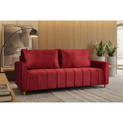 O estofado Amelie, traz em seus assentos a costura em gomos, oferecendo requinte e beleza, em vários revestimentos que podem adequar ao seu espaço e estilo, ele vai deixar o espaço mais aconchegante da sua casa o jeito que você queria. Proporcione-se momentos de conforto, liberando as melhores sensações para o seu corpo. 832547: 847896 =B2=A2: =B42=A42 Acompanha Almofadas extras: Não Almofada do assento: Fixa Almofada do encosto: Removível Altura do assento até o chão: 48 Altura do Encosto: 50 Altura dos Pés: 10 Ambiente Principal: Sala de Estar Complexidade da Montagem: Baixa: pode ser montado por uma pessoa sozinha Cor: Vermelho Cor do Produto: Vermelho Densidade do Assento: D-24 Densidade do Encosto: D-20 Enchimento do Assento: Espuma Enchimento do Encosto: Fibra Siliconada Estilo de Braço: Braços Quadrados Firmeza do Assento: Médio Itens Inclusos: 1 Sofá, Manual de Montagem. Manual de Montagem e Instalação: https://cdn2.madeiramadeira.com.br/atributo/takei-estofados/1322125-sofA-3-lugares-amelie.pdf Material dos Pés: Madeira maciça Necessita Montagem: Sim Origem do Produto: Nacional Peso: 38.75 Pet Friendly: Não Possui Percintas Elásticas: Sim Possui Pés: 05 Possui Rodízio: Não Recomendações de Uso, Manutenção e Limpeza: Evitar exposição direta à luz solar, limpar com escova macia e aspirar o pó semanalmente. Não utilizar produtos químicos, removedores, alvejantes, etc. Resistente à Chuva: Não Revestimento do Braço: Veludo Sistema de Montagem: Bucha Internacional Suporta Até (kg): 100 Tecido Predominante: Veludo Tipo de Encosto: Regulável Tipo de Mola: Molas Bonnel