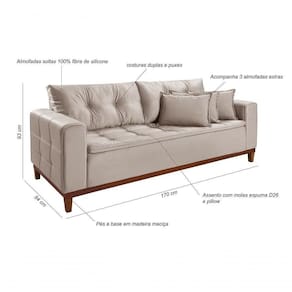 Sofá 3 Lugares Atenas 1,70 Pés e Base em Madeira (Acompanha 3 almofadas) O Sofá Atenas irá transformar sua sala em um ambiente de conforto e bem estar, acomodando até três pessoas sentadas. Desenvolvido com madeira maciça, seu revestimento é de Veludo que tem um toque macio e confortável, almofadas soltas 100% fibras siliconadas, seu assento possui molas, percintas e pillow, espuma D-26 de alta qualidade que fazem deste produto ser ainda mais aconchegante e confortável. Com detalhes que chamam atenção, o sofá Atenas tem costura duplas, no assento, encosto e nos braços que agrega elegância e estilo ao produto. Descrição do Produto: