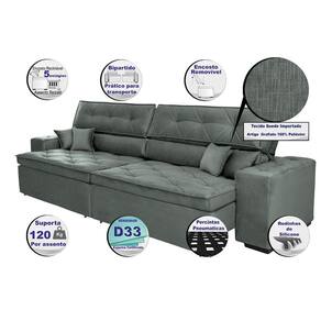 Sofá Austin 2,42m Retrátil, Reclinável Com Molas No Assento E Almofadas, Tecido Suede Grafite