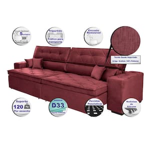 Características: -Encosto Reclinável com 5 posições, almofadas fixas compostas de 80% fibra siliconada e 20% flocos de espuma e percintas elasticas para maior conforto. -Assentos: Retráteis com espuma D33 envolvidas em fibra SILICONADA compactada, Molas espiral, percintas Pneumáticas com feltro para proteger do atrito com as molas. -Braços: Com 25cm de largura, espuma D33 e costuras duplas. -Fixação: Grampos galvanizados -Estrutura de Madeira maciça 100% eucalipto de reflorestamento, produto ecologicamente correto -Tecido suede com toque aveludado