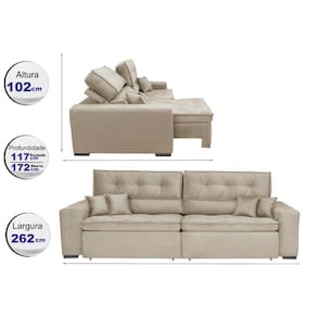 -Braços: Com 25cm de largura, espuma D33 e costuras duplas.