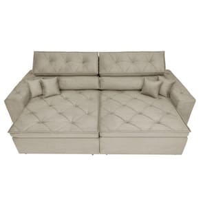 Sofá Austin 2,62m Retrátil, Reclinável com Molas no Assento e Almofadas, Tecido Suede Bege