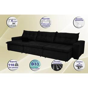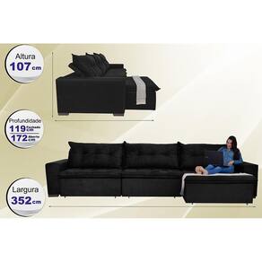 Sofá Austrália 3,52m Retrátil, Reclinável, Molas e Pillow no Assento Tecido Suede Preto Cama InBox