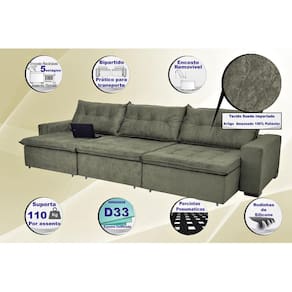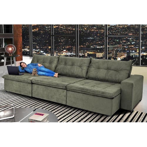 Sofá Austrália 4,12 Mts Retrátil, Reclinável Com Molas e Pillow no Assento Tecido Suede - Cama InBox - Cinza