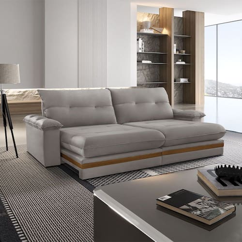 A sua sala de estar só está completa na presença de um bom sofá para receber a família ou curtir os seus momentos de descanso! Pensado para quem quer aliar bom gosto uma estrutura reforçada para o uso diário, a peça tem madeira na composição e revestimento de toque agradável para garantir a qualidade que você merece.