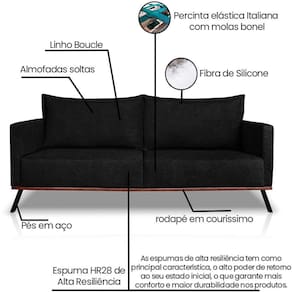 Assentos: Fixo com percintas elásticas italiana, molas bonel e espuma HR28 + plumante em silicone