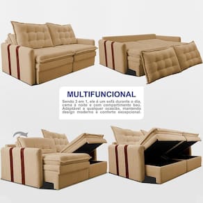 Transforme sua sala em um verdadeiro oásis de conforto e elegância com o Sofá Baú Sem Caixa Retrátil Petit Boucle. Este modelo não só eleva o charme do seu ambiente, como também proporciona uma experiência de descanso incomparável por conta de sua tecnologia de Espuma SoftGel D40 com ThermoGel. Sendo um modelo 3 em 1, ele pode virar uma excelente cama de casal, um belo sofá e ainda tem um ótimo compartimento baú para você organizar suas decorações e objetos.