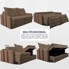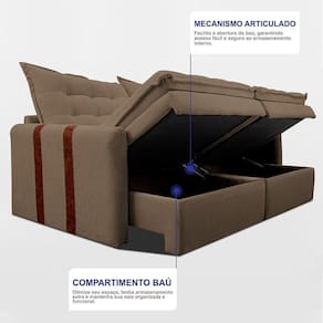 Sofá Baú Sem Caixa Retrátil 1,60m Petit Boucle Marrom Praticidade e Conforto para sua sala!