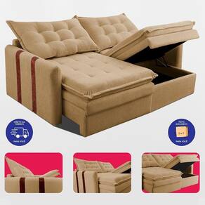 Conforto dos Assentos: Feito com Espuma SoftGel D40 de alta densidade com Tecnologia Thermogel, onde não absorve calor do corpo, mantendo sempre o sofá com sensação FRESH e Aconchegante, percintas Extra Support sendo mais resistente e durável, mantas siliconadas e seus assentos contam com a função baú para maior praticidade e organização.