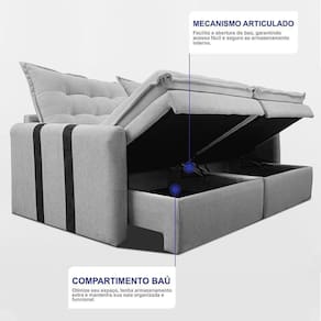 Conforto dos Assentos: Feito com Espuma SoftGel D40 de alta densidade com Tecnologia Thermogel, onde não absorve calor do corpo, mantendo sempre o sofá com sensação FRESH e Aconchegante, percintas Extra Support sendo mais resistente e durável, mantas siliconadas e seus assentos contam com a função baú para maior praticidade e organização.