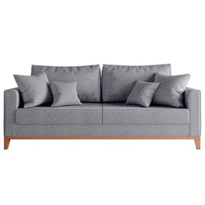 Sofá Beny 3 Lugares Com Base De Madeira Élpis Móveis Linho Cinza