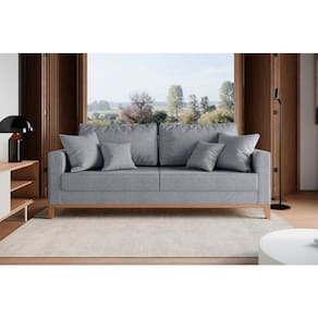 Sofá Beny 3 Lugares Com Base De Madeira - élpis Móveis Linho Cinza