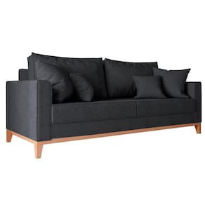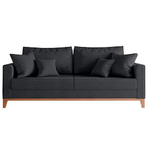 Sofá Beny 3 Lugares Com Base De Madeira Élpis Móveis Linho Grafite - Cinza