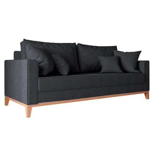 Sofá Beny 3 Lugares Com Base De Madeira - élpis Móveis Linho Grafite