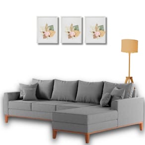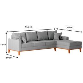 Sofá Beny com Chaise Direita, 2,60x1,40m, 4 Lugares, Linho, Base em Madeira. - Cinza