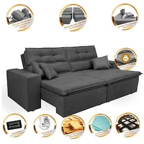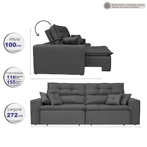 - Acompanha 4 lindas Almofadas que combinam perfeitamente com seu designer compostas por fibra de silicone e flocos de espuma revestidas com o mesmo tecido do estofado.