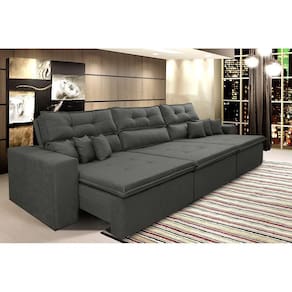 Sofá Cairo 3,82m Retrátil, Reclinável Tecido Suede Cinza
