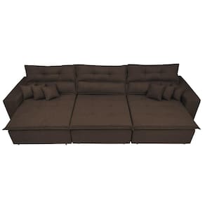 Sofá Cairo. 3,82m Retrátil, Reclinável Tecido Suede Vermelho - Marrom