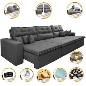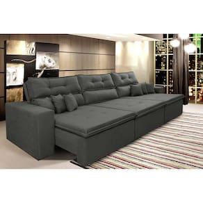 Sofá Cairo 4,12m Retrátil, Reclinável Tecido Suede Preto - Cinza