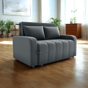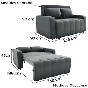 Produto: Sofá cama | Tonalidade: Multicolorido | Cor: Multicolorido | Cômodo Indicado: Salas | Quantidade de lugares: 2 Cor: Cinza