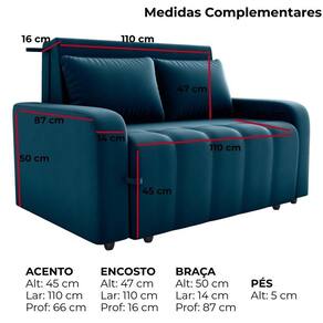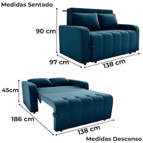 Produto: Sofá cama | Cor: Multicolorido | Tonalidade: Multicolorido | Cômodo Indicado: Salas | Quantidade de lugares: 2 Cor: Azul