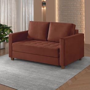 Sofá Cama Marcelle 2 Lugares 150 Casal Veludo Paris Pés De Madeira Talento Móveis Caramelo Com Castanho Disponível no modelo casal e solteiro, o sofá cama Marcelle atende a todos os perfis de usuário. Os Pés de madeira dão a sustentação e confiança necessária, além de almofadas soltas para facilitar no seu manuseio.