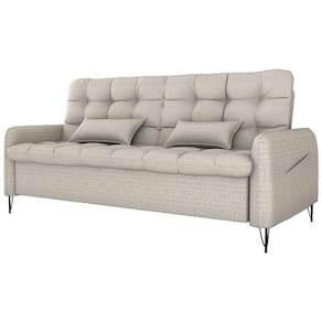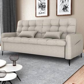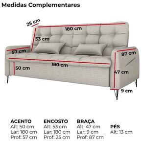 Estofado 2 em 1 para mais praticidade, conforto e um toque moderno na sua sala! O sofá cama Pillar 2 lugares tem estrutura em madeira de eucalipto de reflorestamento e percintas elásticas para maior resistência. Assento e encosto com espuma D20 soft e braças em espuma D23, todos revestidos em tecido Plano Milenum (linho misto: resistente, levemente texturizado e de visual contemporâneo). Sistema retrátil com catraca que permite abertura para função cama. Conta ainda com pés em ferro, bolsos laterais (35x37 cm) e acompanha 2 almofadas decorativas. Suporta até 110 kg por assento. Este móvel chegará em sua casa separado em 01 volume.