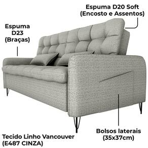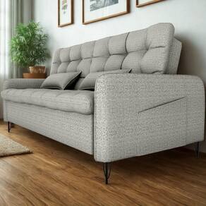 Estofado 2 em 1 para maior praticidade, conforto e aquele toque moderno para sua sala! Sofá cama Pillar 2 lugares, com estrutura em madeira Eucalipto de reflorestamento e percintas elásticas para maior resistência. Assento e encosto com espuma D20 soft e braças em espuma D23, revestidos em tecido Vancouver Linen (linho misto: resistente, levemente texturizado e de visual contemporâneo, com composição em poliéster). Sistema retrátil com catraca que permite abertura para função cama. Pés em ferro e bolsos laterais (35x37 cm) para armazenamento de objetos. Suporta até 110 kg por assento e acompanha 2 almofadas decorativas. Este móvel chegará em sua casa separado em 01 volume.