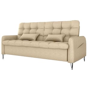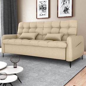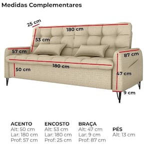 Estofado 2 em 1 para maior praticidade, conforto e aquele toque moderno para sua sala! Sofá cama Pillar 2 lugares, com estrutura em madeira Eucalipto de reflorestamento e percintas elásticas para maior resistência. Assento e encosto com espuma D20 soft e braças em espuma D23, revestidos em tecido Vancouver Linen (linho misto: resistente, levemente texturizado e de visual contemporâneo, com composição em poliéster). Sistema retrátil com catraca que permite abertura para função cama. Pés em ferro e bolsos laterais (35x37 cm) para armazenamento de objetos. Suporta até 110 kg por assento e acompanha 2 almofadas decorativas. Este móvel chegará em sua casa separado em 01 volume.