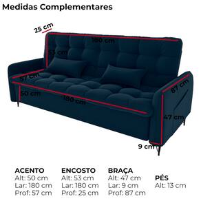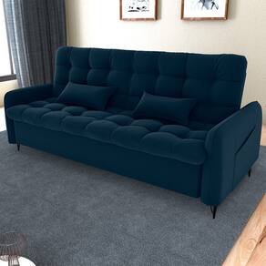 Estofado 2 em 1 para maior praticidade, conforto e aquele toque moderno para sua sala! Sofá cama Pillar 2 lugares, estrutura em madeira de eucalipto de reflorestamento e percintas elásticas para maior resistência, assento e encosto com espuma D20 soft e braças espuma D23, revestidos em tecido Veludo (macio, com toque suave e acabamento sofisticado). Sistema retrátil com catraca que permite abertura para função cama. Pés em ferro e bolsos laterais (35x37cm) para armazenamento de objetos. Suporta até 110kg por assento. Este móvel chegará em sua casa separado em 01 volume.