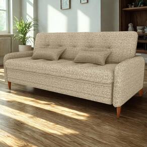 Conforto que se destaca com visual clean: o Sofá-Cama Donna é a definição de curvas suaves e toque moderno! Sua estrutura é feita em madeira de Eucalipto de reflorestamento, com reforço de cintas elásticas e molas espirais, garantindo resistência e durabilidade. Os assentos e encostos são compostos por espuma D26, enquanto as braças utilizam espuma D23, proporcionando conforto extra em todos os pontos. O revestimento é em tecido Vancouver Linen (Linho misto: resistente, levemente texturizado e com visual contemporâneo). As bordas arredondadas e os pés em madeira completam o design com um toque atual. Já o sistema de abertura tipo catraca permite 3 posições de uso: Sentado (modo sofá), Leitura (encosto inclinado) e Descanso (modo cama). Suporta até 110 kg por assento e acompanha 2 almofadas decorativas (55x35 cm). Este móvel será entregue em sua casa separado em 01 volume.